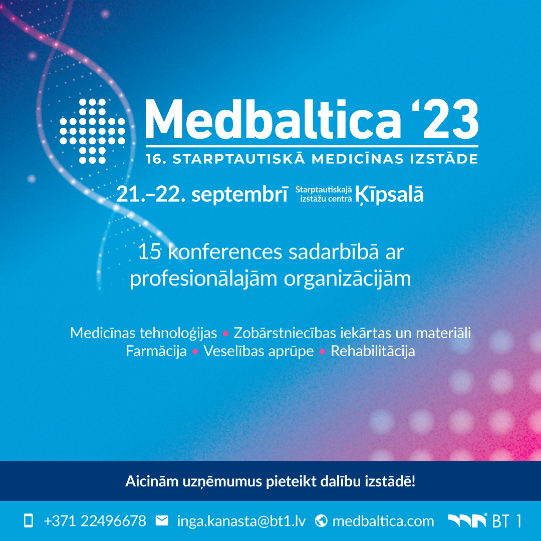 No 21. un 22. septembrim Starptautiskajā izstāžu centrā Ķīpsalā jau 16. reizi notiks Baltijas nozīmīgākā medicīnas izstāde “Medbaltica 2023”, kas pulcēs vairāk nekā 10 000 dažādu veselības nozaru speciālistus, medicīnas produkcijas ražotājus un tirgotājus no Latvijas un ārvalstīm. Paralēli izstādei sadarbībā ar profesionālajām organizācijām norisināsies 15 konferences.